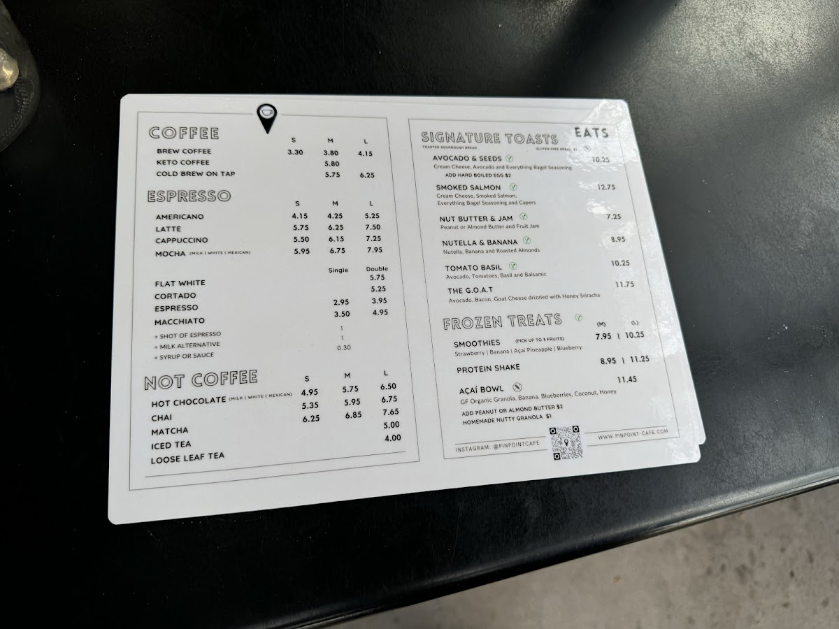 Pinpoint Cafe Menu